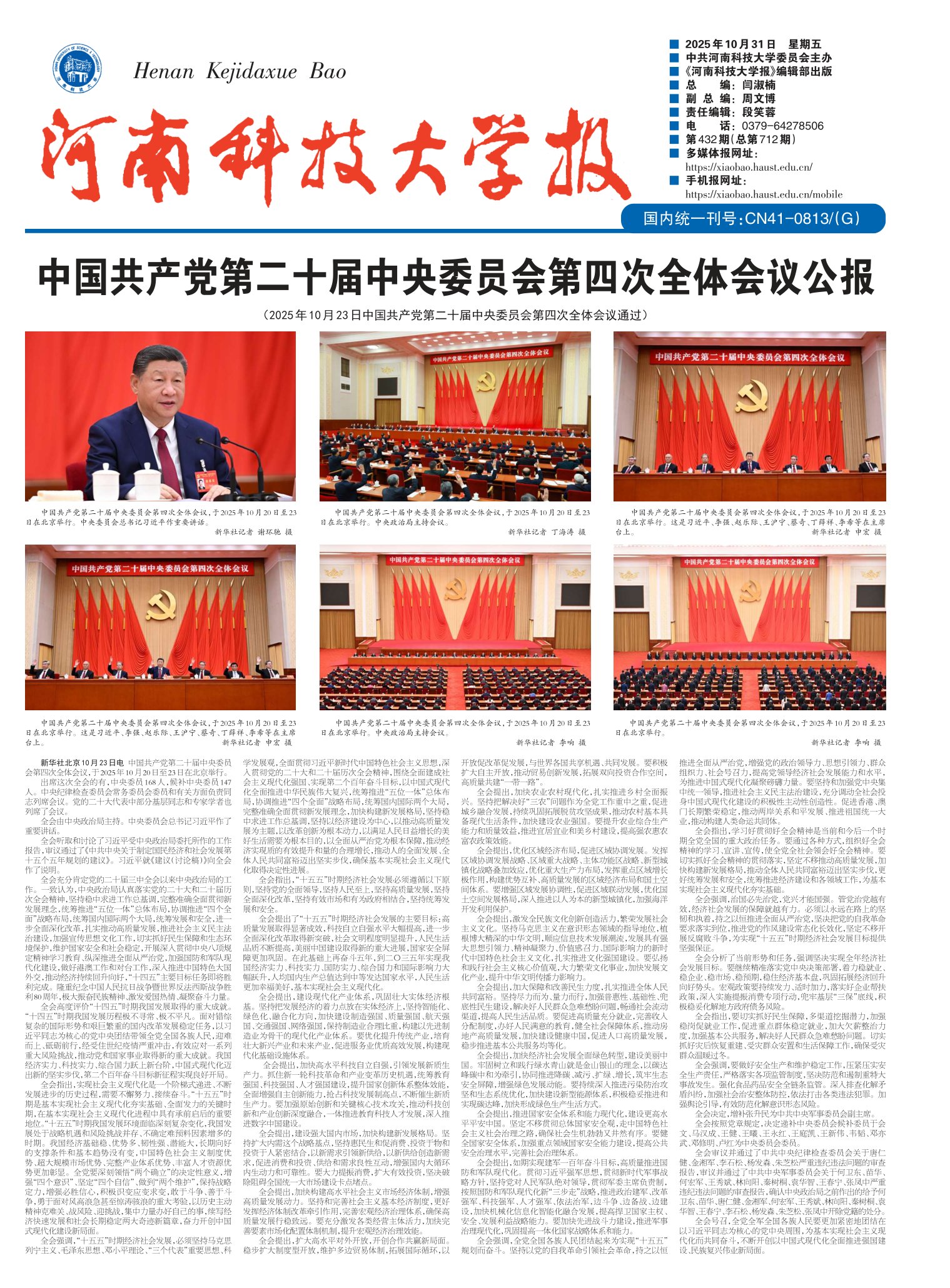中国共产党第二十届中央委员会第四次全体会议,于2025年10月20日至23日在北京举行。中央委员会总书记习近平作重要讲话。新华社记者谢环驰摄中国共产党第二十届中央委员会第四次全体会议,于2025年10
