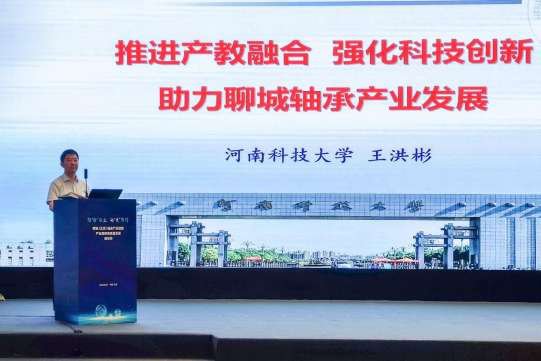王洪彬以《推进产教融合 强化科技创新助力聊城轴承产业发展》为主题作报告,向与会专家和企业家代表介绍了学校的基本情况、以及轴承专业的发展状况。他指出,河南科技大学轴承专业至今已有 50 年的历史,学校发展深深打上了“轴承”烙印,在人才培养、科学研究等方面形成了鲜明特色。学校具有轴承专业方向本、硕、博、博士后完备人才培养体系,为行业培养了一大批轴承杰出人才。近年来,学校积极承担国家重大科研项目,努力突破关键核心技术问题,为轴承行业发展作出重要贡献。他表示,学校将进一步大力推进轴承专业师资队伍建设改革,扩大轴承专业人才培养供给,着力解决人才短缺问题,助力聊城轴承产业发展。学校愿意与中国轴承工业协会一道,促进产教融合、科教融汇,以协同创新实现教育链、产业链、价值链有机融合,为推动轴承产业高质量发展、加快建设制造强国贡献智慧和力量。聊城市委副书记、市长张百顺,副市长刘培国分别介绍了聊城轴承产业的发展、规划和需求。洛阳轴承研究所有限公司、中机十院国际工程有限公司、中国锻压协会、中国国际贸易促进会机械行业分会、中国热处理行业协会、中国特钢企业协会等负责人纷纷表示,希望与我校进一步深化轴承行业产学研合作。