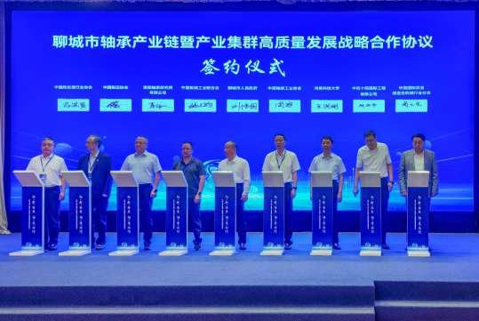 会上,聊城市人民政府、中国轴承工业协会、中国机械工业联合会、河南科技大学、洛阳轴承研究所有限公司、中机十院国际工程有限公司、中国锻压协会、中国国际贸易促进会机械行业分会、中国热处理行业协会共同签署了《聊城市轴承产业链暨产业集聚群高质量发展战略合作协议》,并发布《聊城轴承产业高质量发展北京协议》。