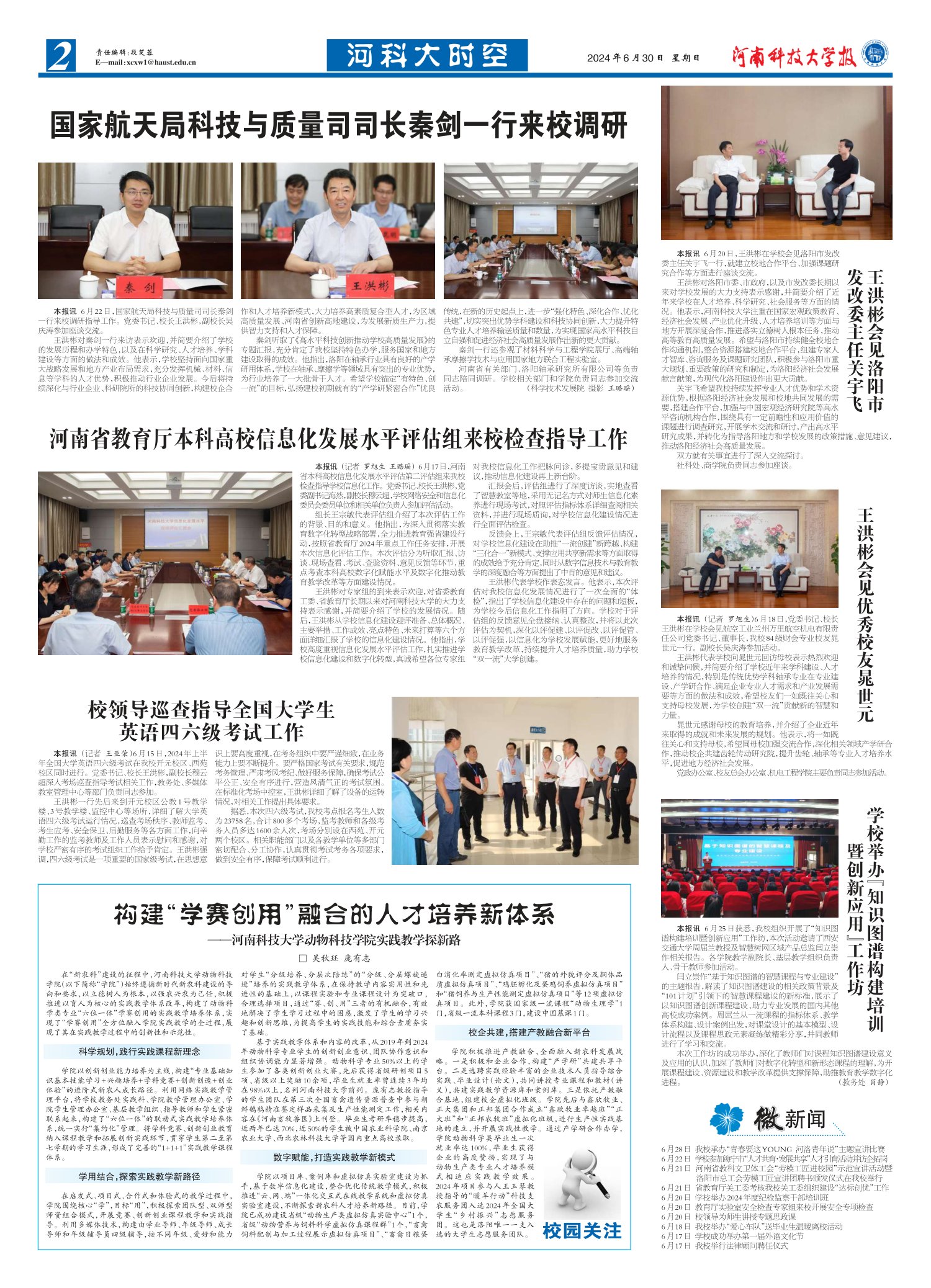 本报讯 6月20日,王洪彬在学校会见洛阳市发改委主任关宇飞一行,就建立校地合作平台、加强课题研究合作等方面进行座谈交流。