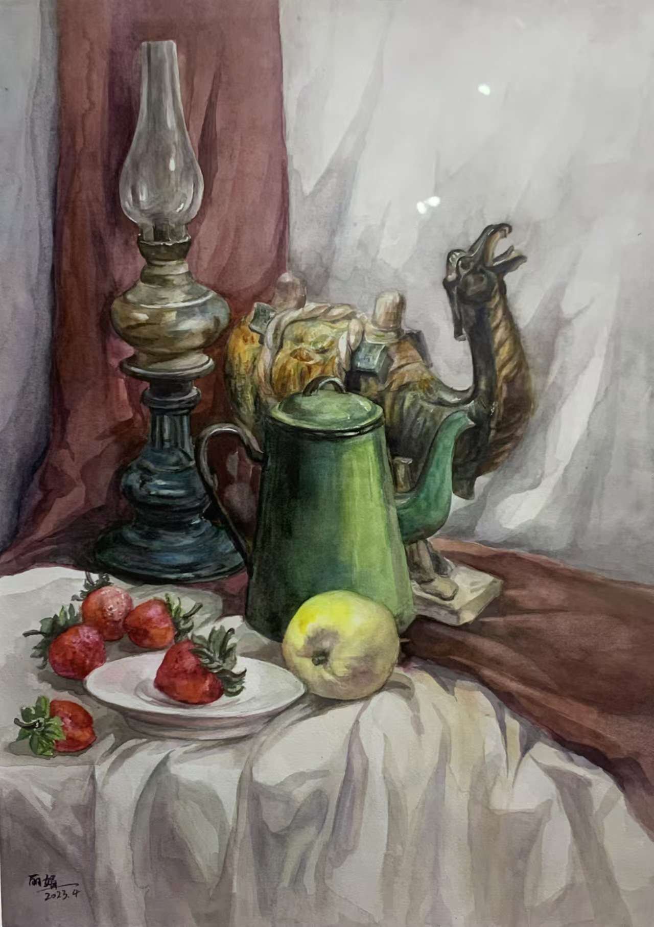 此次展览的作品,题材丰富多样,涵盖了书法、中国画、油画、水彩、插画等诸多领域;风格各异,既有传统技法的传承与展现,又有现代理念的融合与创新。每一幅书法作品都凝聚着老师们的深厚功底,或刚劲有力,如剑舞银蛇;或飘逸洒脱,似行云流水,展现出汉字的独特韵味与文化内涵。每一幅绘画作品都饱含着老师们的情感寄托,或描绘祖国美丽的山川河流与大自然的季节变化;或关注校园的窗明几净或小桥流水;或刻画生活中人物的昂扬向上的精神风貌。展现出艺术家对生活的热爱,对人性的洞察与关怀。