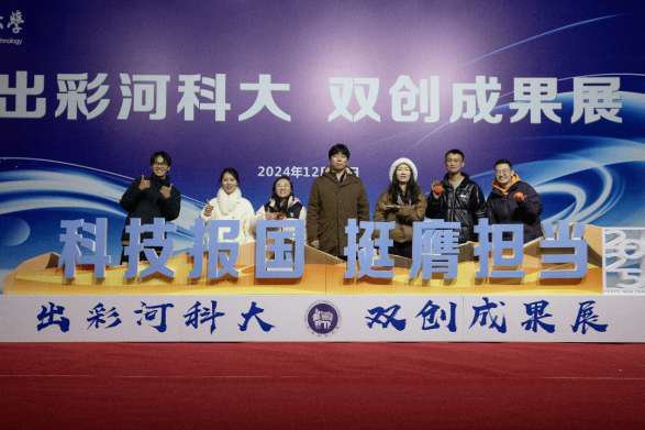 作为学习贯彻习近平总书记给我校大学生重要回信精神系列活动之一的“出彩河科大双创成果展”上,彩灯闪烁,人头攒动。校领导与现场师生们亲切交谈,一同观看各类科技创新成果的现场展示,听取项目团队的讲解及演示,并参与趣味横生的互动体验。现场洋溢着“人人参与创新,矢志科技报国”的浓厚氛围,展现了河科大学子赓续科技创新之力的激情和力量。