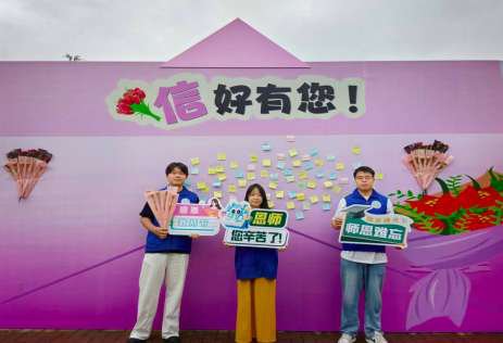“斯人若彩虹,遇见方知有。”9月10日,天空下着迷蒙细雨。撑着伞来到公教四前边,映入眼帘的是同学们在“信好有您”展板上的留言便签,五颜六色的,内心也变得柔软而温暖。三名志愿者学生刘尚更、王艺佳、李英凯正在帐篷处值班。每当有老师路过,他们都会送一支美丽的康乃馨给老师。我也有幸得到了一支粉色、可爱的康乃馨。那么多的留言都是学生们对老师的片片心意。摘录下来,记录此刻的美好。