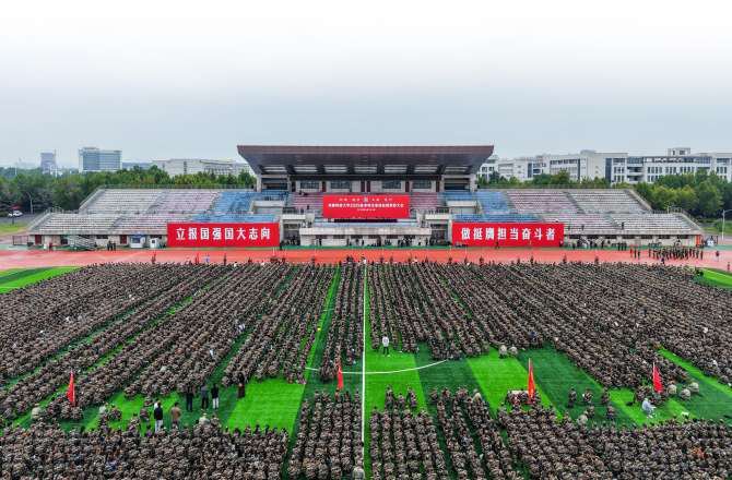 本报讯9月28日,河南科技大学2025级本科生军训总结表彰大会在开元校区主体育场举行。校党委副书记海然,副校长侯小改、王学峰出席大会。会议由侯小改主持。