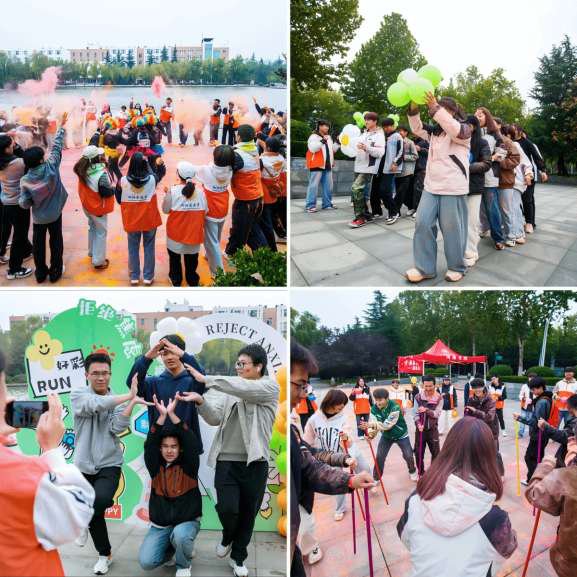 启动仪式后,3000余名学生参加“阳光彩虹跑”,活动设置3条路线、9个户外游戏点及环环相扣、手脚并用、不倒森林等15项心理游戏,同学们挥洒彩粉,默契配合,在奔跑中释放压力、体验快乐,在协作中感受积极的生活态度。