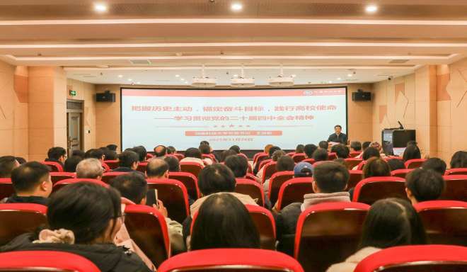 王洪彬围绕全会召开的历史方位、重要意义、“十四五”时期的重大成就和“十五五”时期经济社会发展的主要目标与重大部署等内容,对全会精神进行了系统宣讲。他结合全会提出的新思想新观点、高等教育发展新形势新要求和学校改革发展新任务,就如何服务现代化产业体系建设、助推高水平科技自立自强、落实立德树人根本任务等,提出贯彻落实全会精神的实践路径。