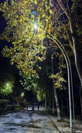 在被理化公式与英语单词填满的忙碌里,不经意地撞见这秋夜长街。路灯把梧桐叶的黄绿晕染成温柔的画作,夜风吹落的叶与骑行者的身影,在静谧里织就了松弛的网。原来再紧绷的神经,也会被这样的夜色轻揉,卸下一身疲惫,只余此刻的安然。
