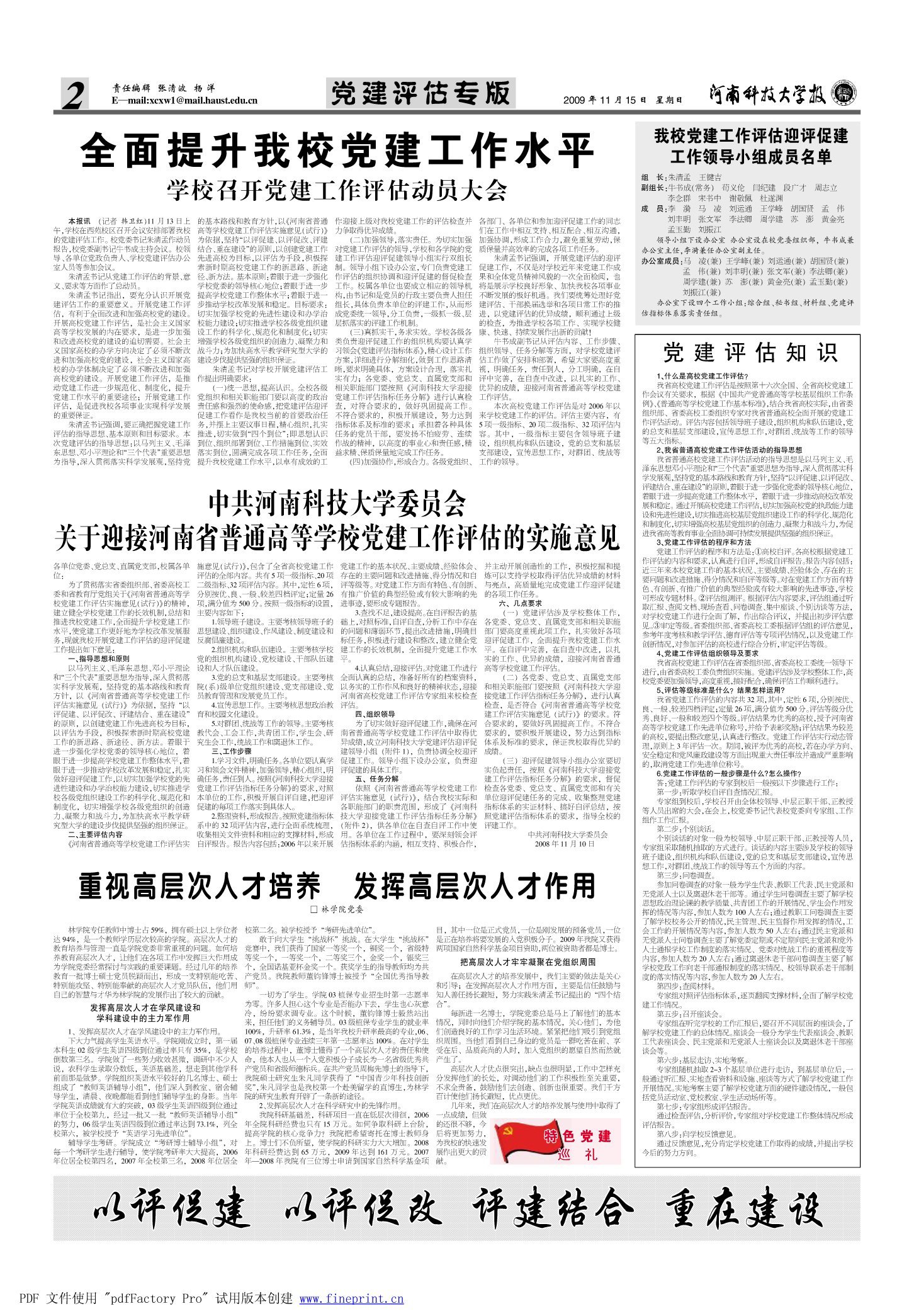 中共河南科技大学委员会关于迎接河南省普通高等学校党建工作评估的实施意见