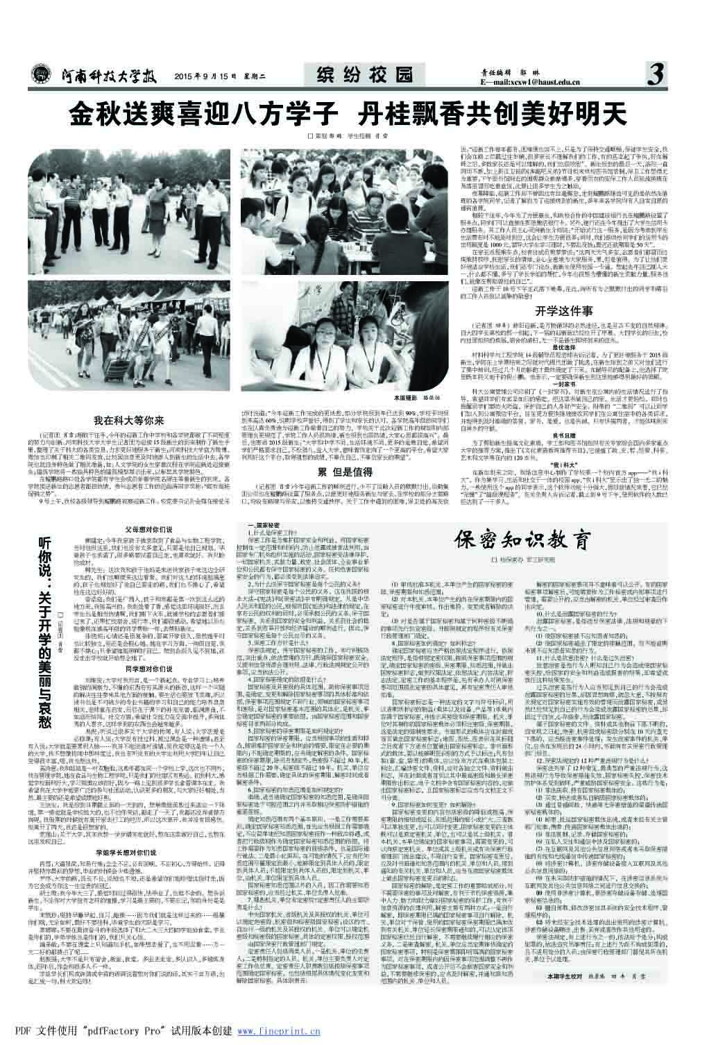 |||我在科大等你来(记者团肖雪)相较于往年,今年的迎新工作中学校和各学院都做了不同程度的努力与创新。河南科技大学大学生记者团为迎接15级新生的到来制作了新生手册,整理了关于科大的各类信息,力求更好地