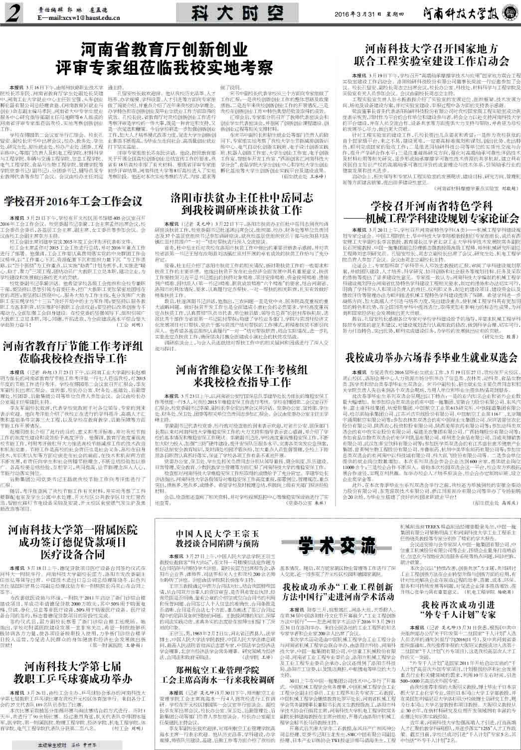 本报讯为促进我校2016届毕业生就业工作,3月19日至27日,我校在开元校区、周山校区、洛阳会展中心人力资源市场分别举办了信息类、农林类、动科类、食品生物类、医学类和综合类春季毕业生双选会。宋书中副校