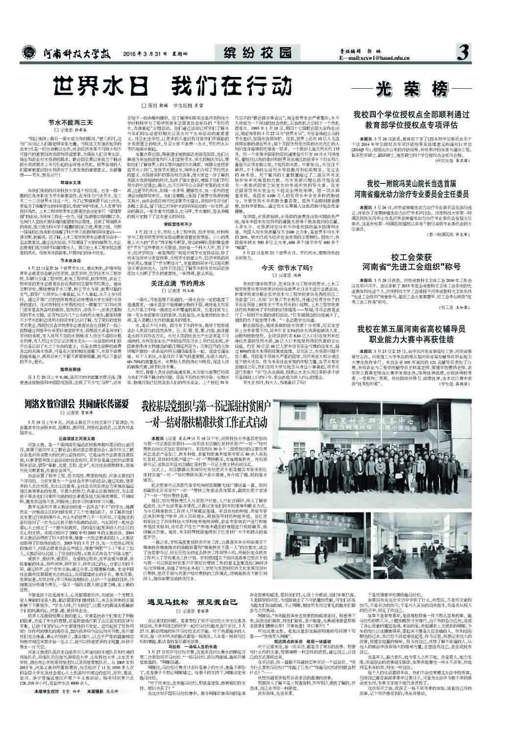 本报讯3月28日获悉,河南省教科文卫体工会2016年工作会议在郑州召开。会议表彰了2015年度全省教科文卫体工会系统的先进集体和先进个人。河南科技大学工会被授予河南省教科文卫体系统“先进工会组织”荣誉