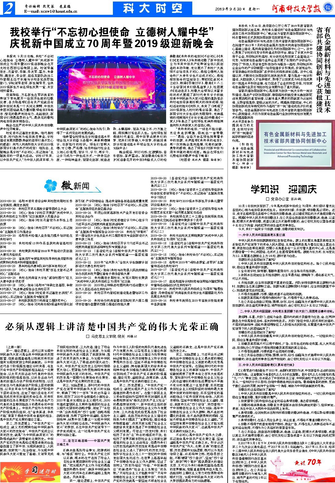 2019-09-30洛阳市委常委娄会峰来校慰问副校长李全安教授、魏世忠教授2019-09-30我校召开第五届教学督导团成立大会2019-09-30【初心·使命】学校召开荣获“庆祝中华人民共和国成立70