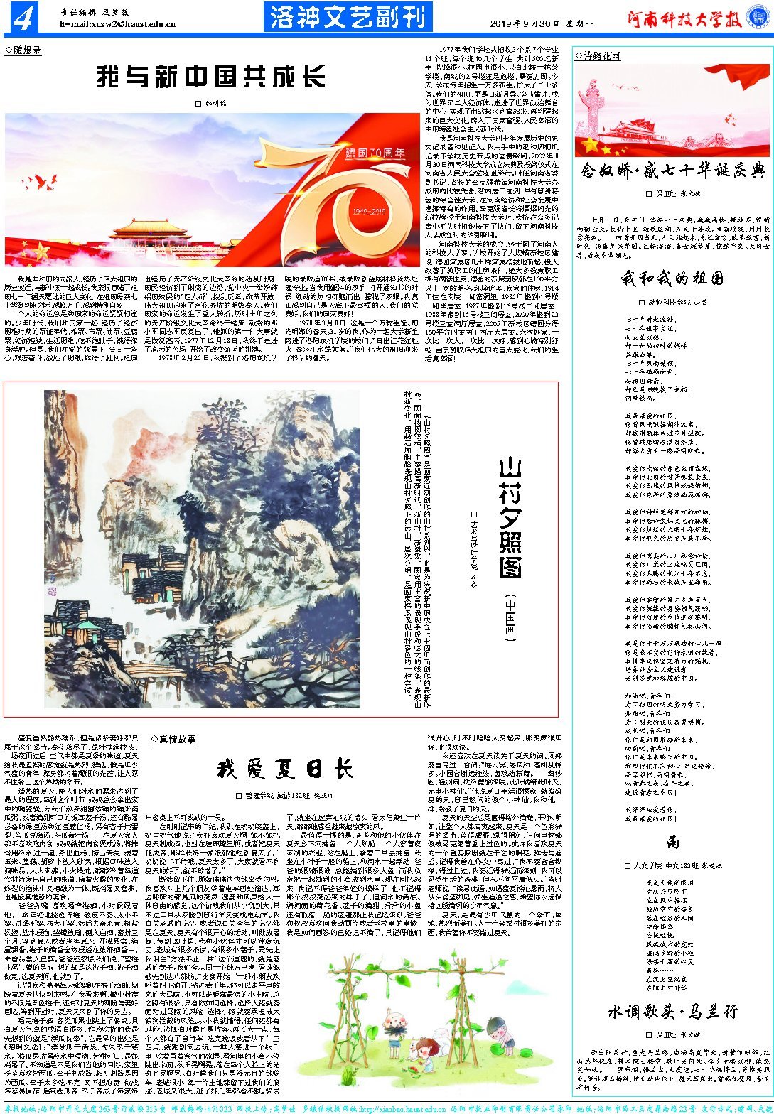 我是共和国的同龄人,经历了伟大祖国的历史变迁,与新中国一起成长。我亲眼目睹了祖国七十年翻天覆地的巨大变化,在祖国母亲七十华诞到来之际,感慨万千,感到特别自豪!个人的命运总是和国家的命运紧紧相连的。少年