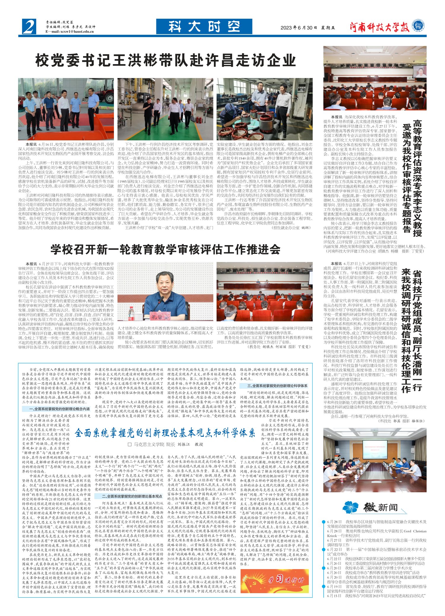 本报讯6月27日下午,河南科技大学新一轮教育教学审核评估工作推进会以线上线下结合的方式在图书馆522报告厅召开。全体在校校领导出席会议。全体处级干部、评估建设办公室工作人员及本科生院工作人员参加会议。