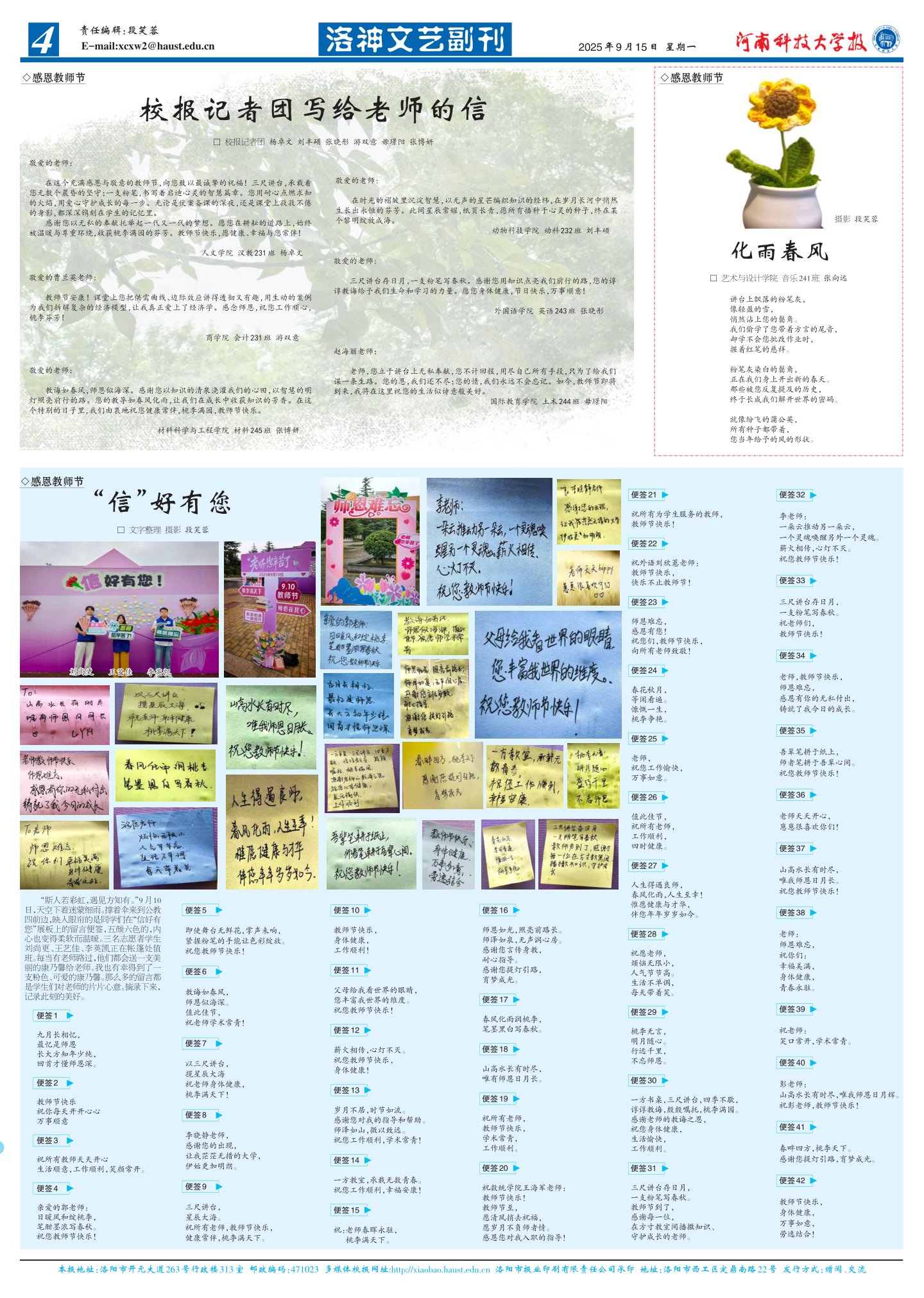 李英凯刘尚更王艺佳“斯人若彩虹,遇见方知有。”9月10日,天空下着迷蒙细雨。撑着伞来到公教四前边,映入眼帘的是同学们在“信好有您”展板上的留言便签,五颜六色的,内心也变得柔软而温暖。三名志愿者学生刘尚